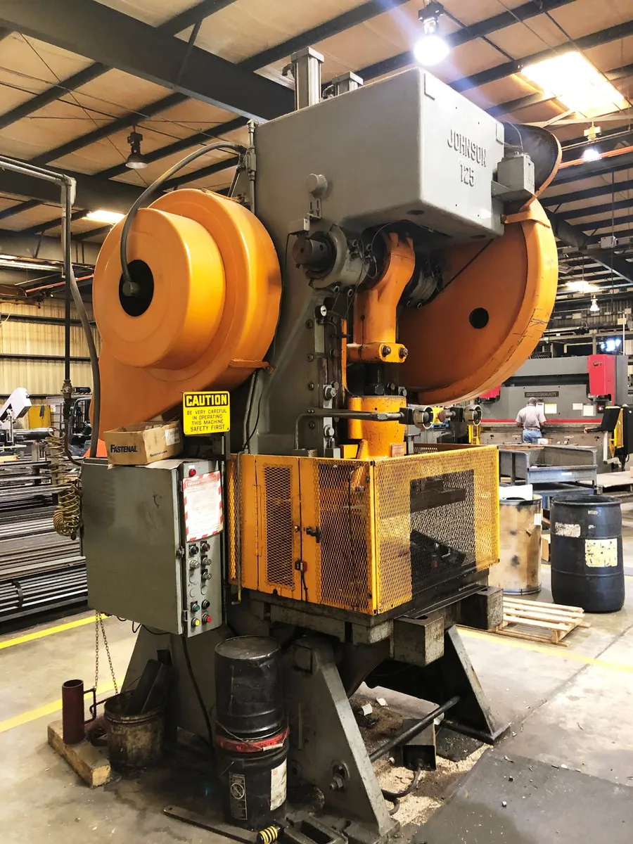 125 Ton Johnson OBI Press, 3" Stroke, 19" SH, 4" Adj., 42" x 27" Bed, 40 SPM