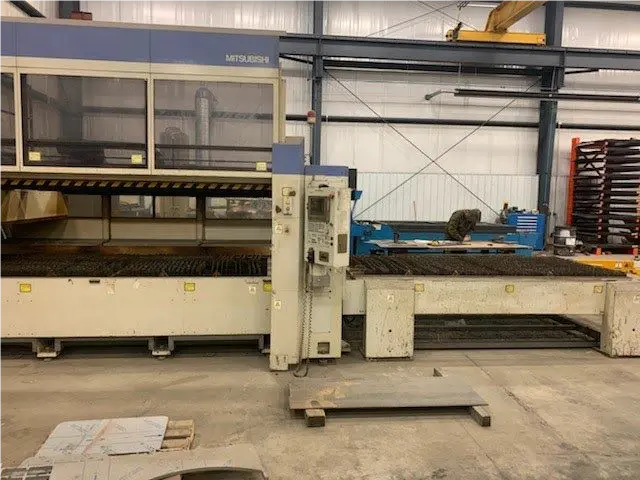 2001 Mitsubishi 3015LZP Laser Cutting System, 5’ X 10’ 3,000 Watt CNC Laser Cutting System with Mitsubishi Control, Pallet Changer, Chiller and Less Than 11K Hours.
