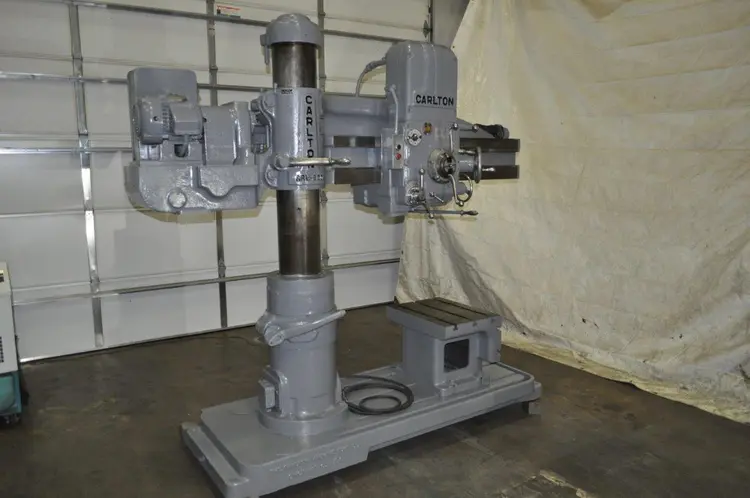 4' x 9" Carlton Model 1A Radial Arm Drill, #4MT Taper, Power Elevation, Power Clamping, Power Quill Feed, Coolant