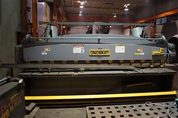 ¼” X 12’ Cincinnati 1812 Mechanical Power Squaring Shear with 40” Front Operated Power Back Gauge, 12' Squaring Arm, Front Support Arms, Foot Treadle, Lubrication System, Motor and Electric Controls.
