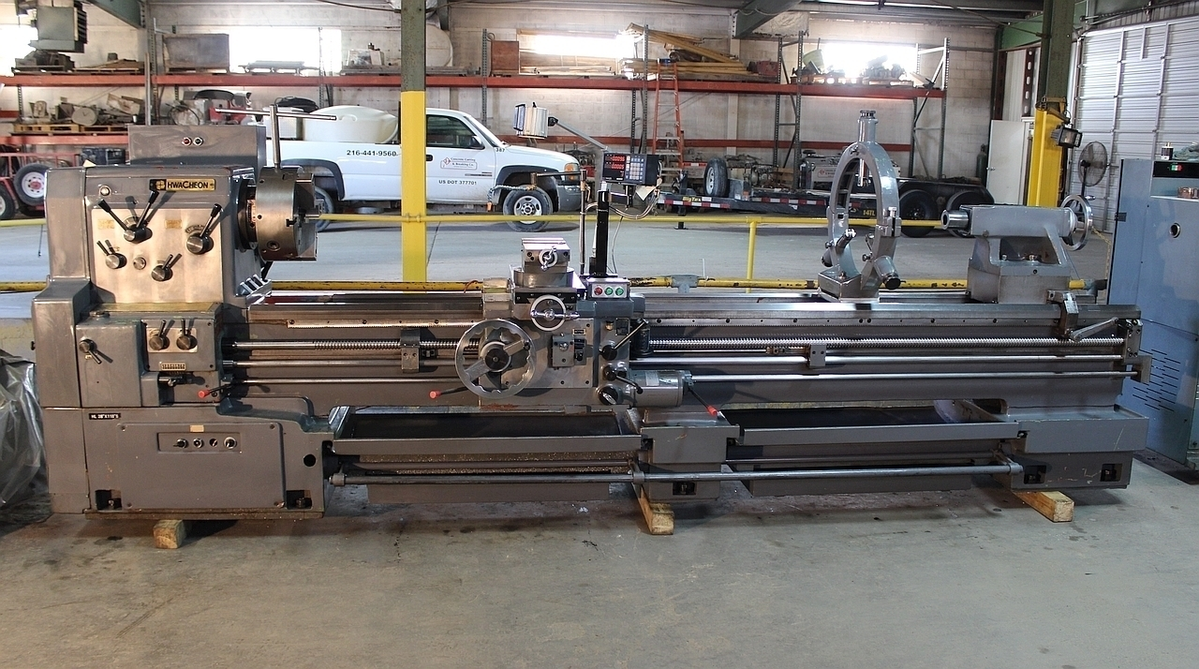 28" x 118" Whacheon HL720 Engine Lathe, 2-Axis Sony DRO, Rapid Traverse, Thread Dial, Extra Large Steady Rest, 15" Buck Adjustable 3-Jaw chuck, 1999