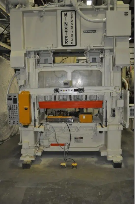 250 Ton Minster E2-250-72 SSDC Press, 8" Stroke, 21" SH, 0-80 SPM, 27" Windows