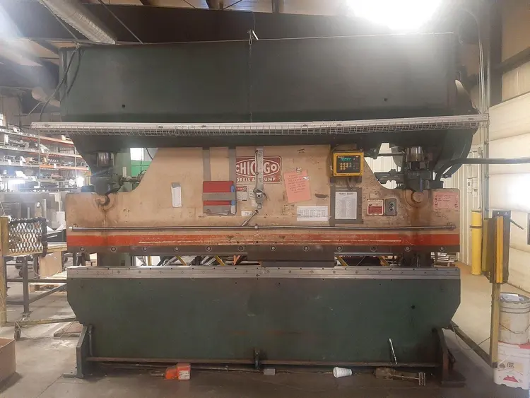 120/80 ton x 12' CHICAGO MODEL 1012M D&K MECHANICAL PRESS BRAKE, AUTOGAUGE CNC GAUGE, 2018 AUTO COMPENSATING DIE HOLDER, ISB LIGHT CURTAINS