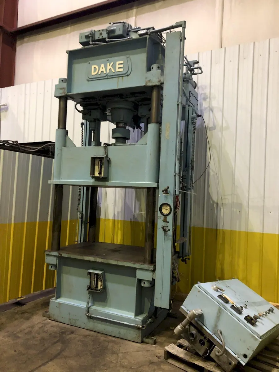 150 TON DAKE MODEL #27-777 HYDRAULIC 4-POST PRESS, 24" Stroke, 12" Closed Height, 63" x 43" Bed,